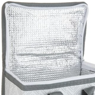 This foldable lunch bag keeps food cool and fresh, in a stylish design with grey handles.