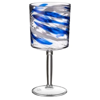 A pack of four stylish wine glasses, with elegant aquatic swirls and an elegant stem.Â