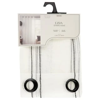 Complete your living, dining and bedrooms with this beautiful Ezra Stripe Voile With Black Eyelets.